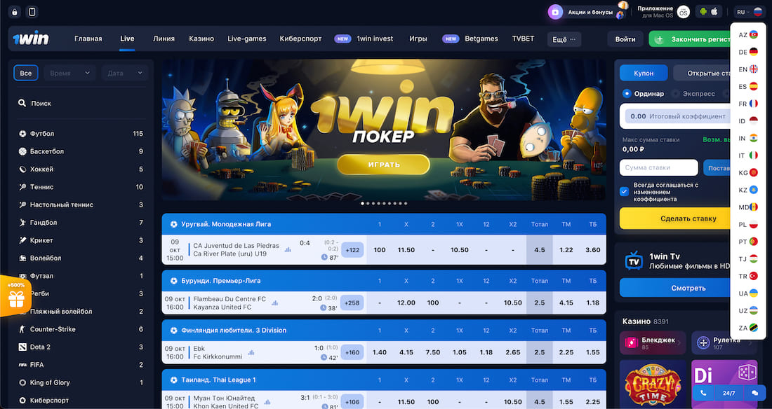 Ставки на спорт в 1 win можно делать как в прематче, так и в лайве. Прематч предоставляет список спортивных событий, которые начнутся в ближайшие часы. Вы можете добавить интересующий матч в избранное и вернуться к нему позже.
